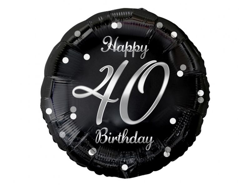 Balon foliowy z helem „B&C Happy 40 Birthday”, czarny, nadruk srebrny, 45 cm (18 cali)