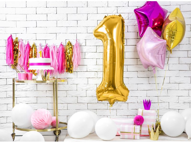 Balon foliowy z helem „cyfra 1”, złota, 100 cm