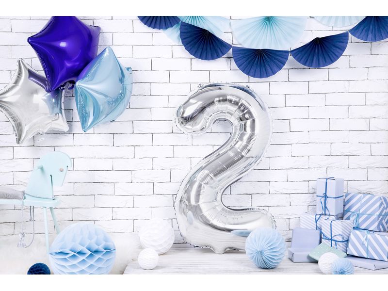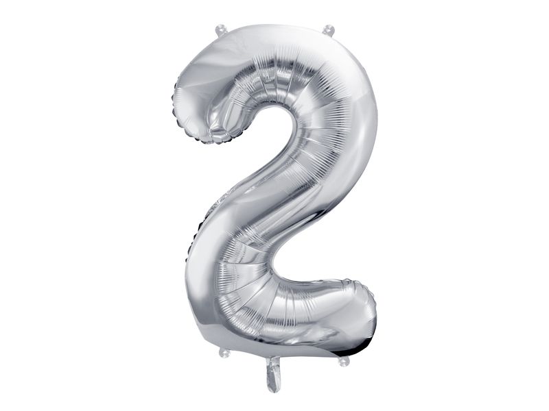 Balon foliowy z helem „cyfra 2”, srebrna, 100 cm