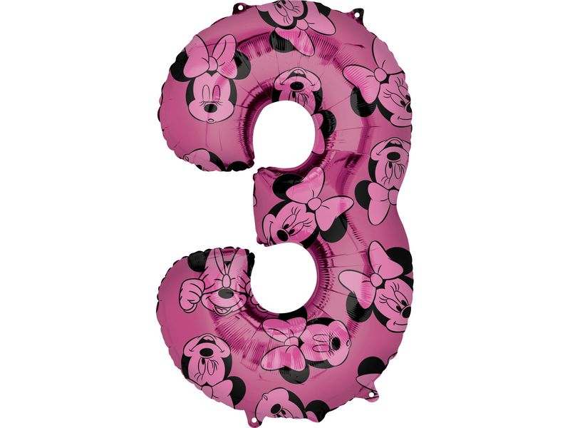 Balon foliowy z helem „cyfra 3”, fioletowa, Myszka Miki (Mickey Mouse), 66 cm