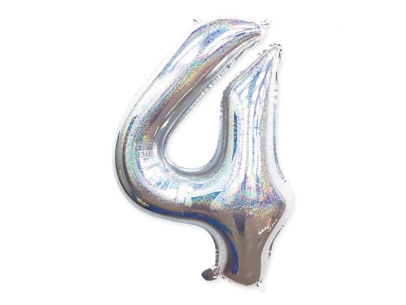 Balon foliowy z helem „cyfra 4”, holograficzna srebrna, 100 cm