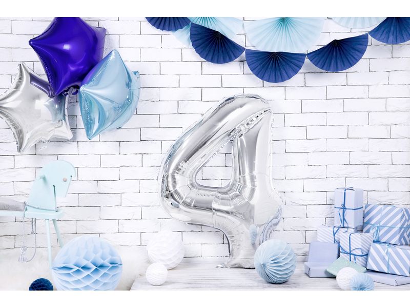 Balon foliowy z helem „cyfra 4”, srebrna, 100 cm