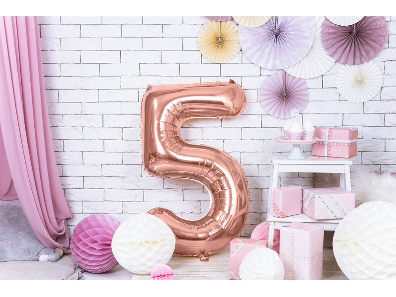 Balon foliowy z helem „cyfra 5”, różowe złoto, 100 cm