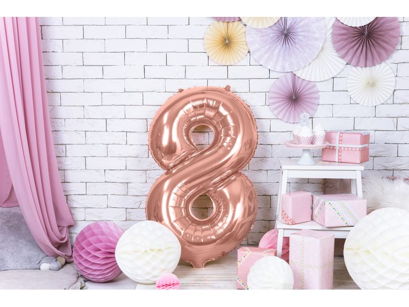 Balon foliowy z helem „cyfra 8”, różowe złoto, 100 cm