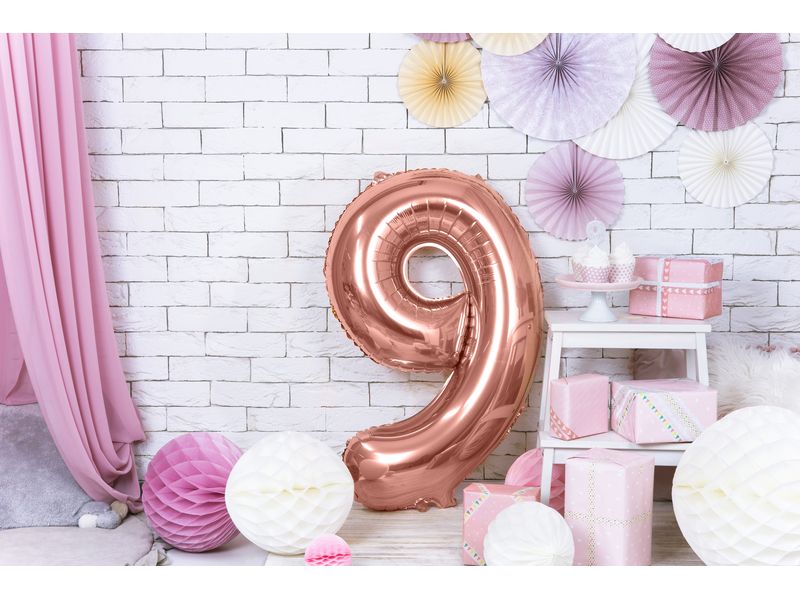 Balon foliowy z helem „cyfra 9”, różowe złoto, 100 cm