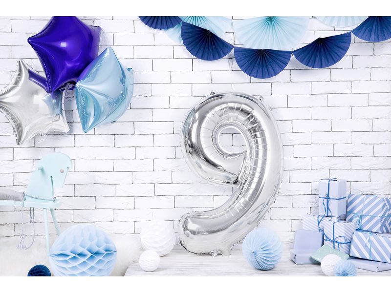 Balon foliowy z helem „cyfra 9”, srebrna, 100 cm
