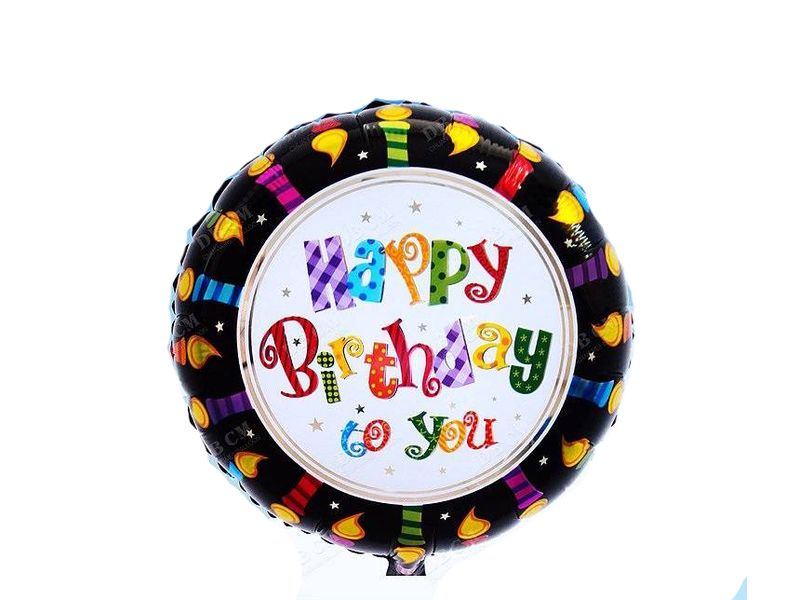 Balon foliowy z helem „Happy Birthday”, świeczki na czarnym, 45 cm (18 cali)