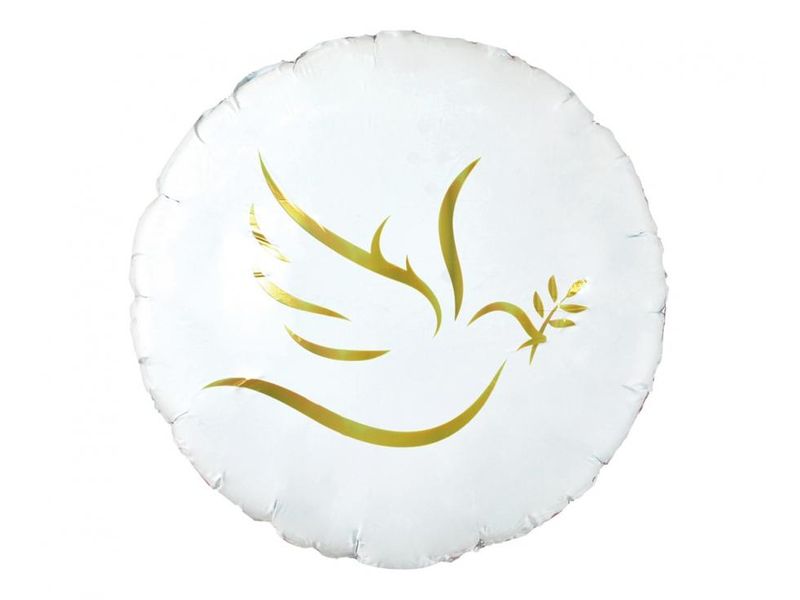 Balon foliowy z helem Komunia Święta – Złoty gołąbek, 45 cm (18 cali)