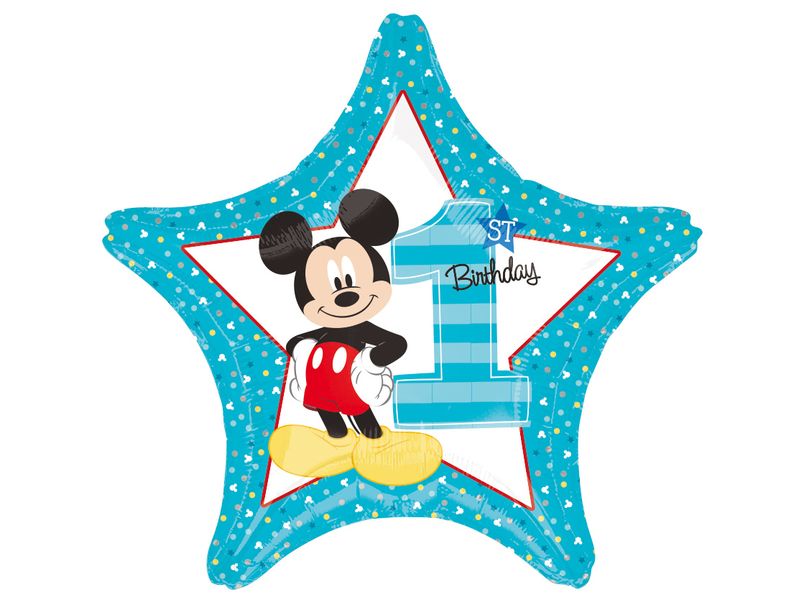 Balon foliowy z helem „Myszka Mickey na Pierwsze urodziny”, 45 cm (18 cali)
