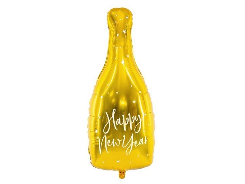 Balon foliowy z helem, Szampan „Happy New Year!”, złoty, 100 cm x 50 cm
