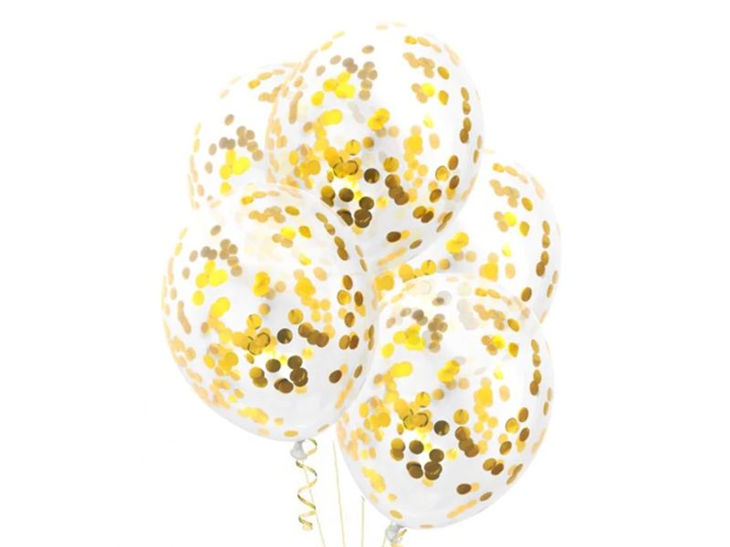 Balon lateksowe z helem, konfetti złote, 26 cm (12 cali), 1 szt.