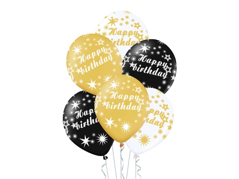 Zestaw balonów Happy Birthday z helem, czarno biało złoty, 12 cali, 6 szt.