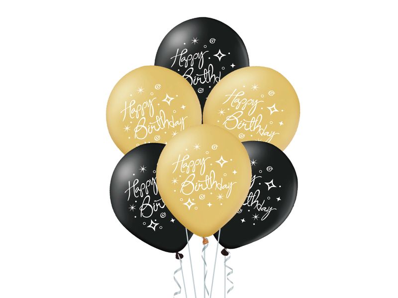 Zestaw balonów Happy Birthday z helem, czarno złoty, 12 cali, 6 szt.