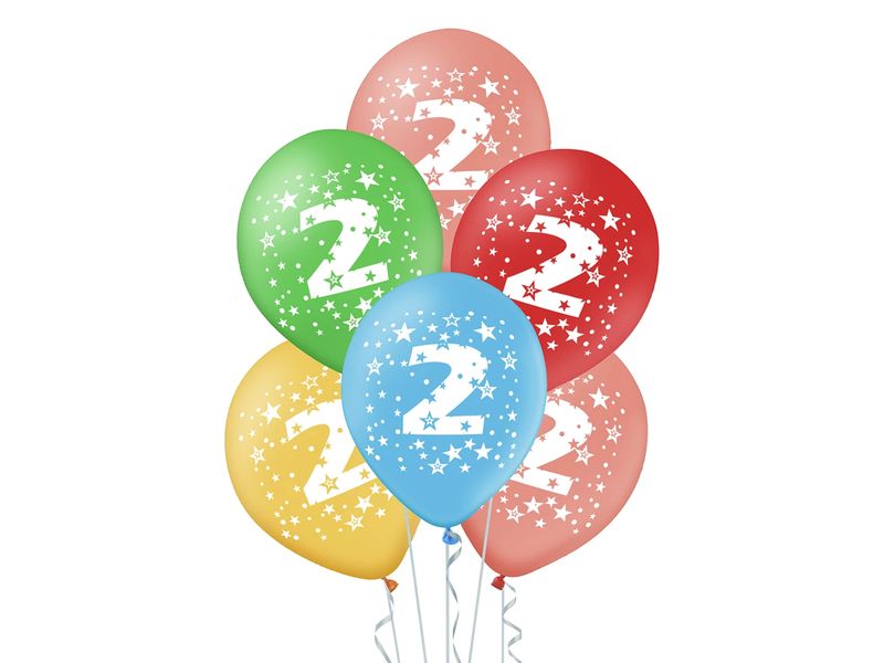Zestaw balonów kolorowych z helem na urodziny z cyfrą „2”, 5 szt.