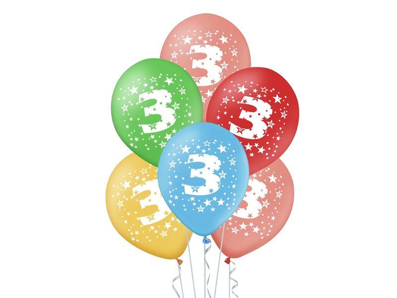Zestaw balonów kolorowych z helem na urodziny z cyfrą „3”, 5 szt.