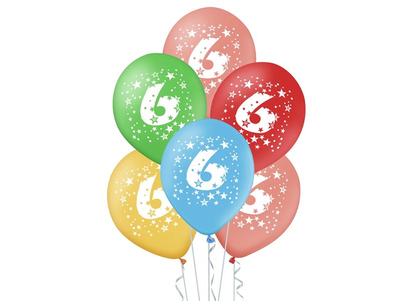 Zestaw balonów kolorowych z helem na urodziny z cyfrą „6”, 5 szt.