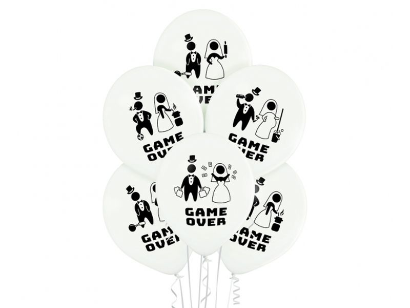- 6 szt. – balon lateksowy (gumowy) z nadrukiem Game Over, 12 cali