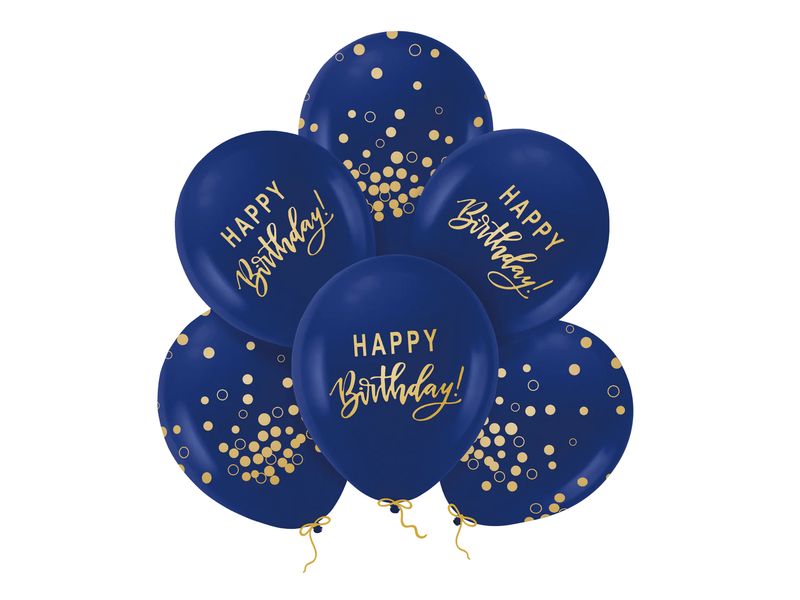 Zestaw balonów z helem „Happy Birthday”, granatowo złote, 12 cali, 6 szt.