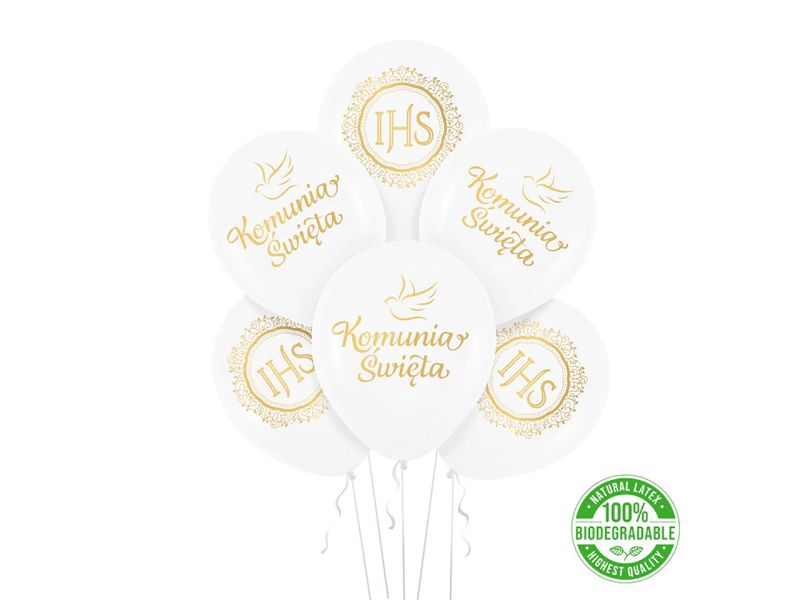 Zestaw balonów z helem na Komunię Świętą, Gołąbek, 6 szt.
