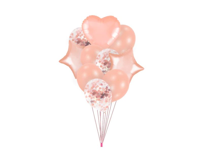 Zestaw balonów z helem, Na urodziny dla dziewczyny, różowo złoty, 10 szt.