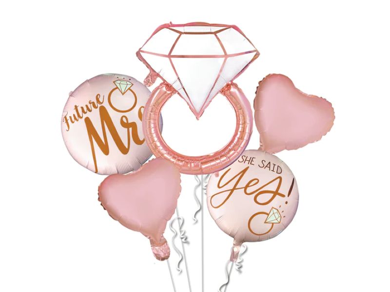 Zestaw balonów z helem, Na Wieczór Panieński z pierścionkiem, różowo złoty, 5 szt.