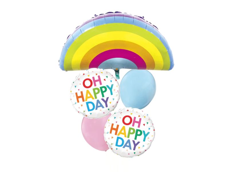 Zestaw balonów z helem, Oh Happy Day z tęczą, 5 szt.